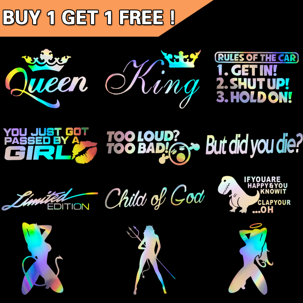 Acquistare Accessori Per Auto King Queen Cars Stickers Waterproof Vinyl Car Wrap For Auto Decal Customized Accessories Motorcycle Styling Decoration Car Decor