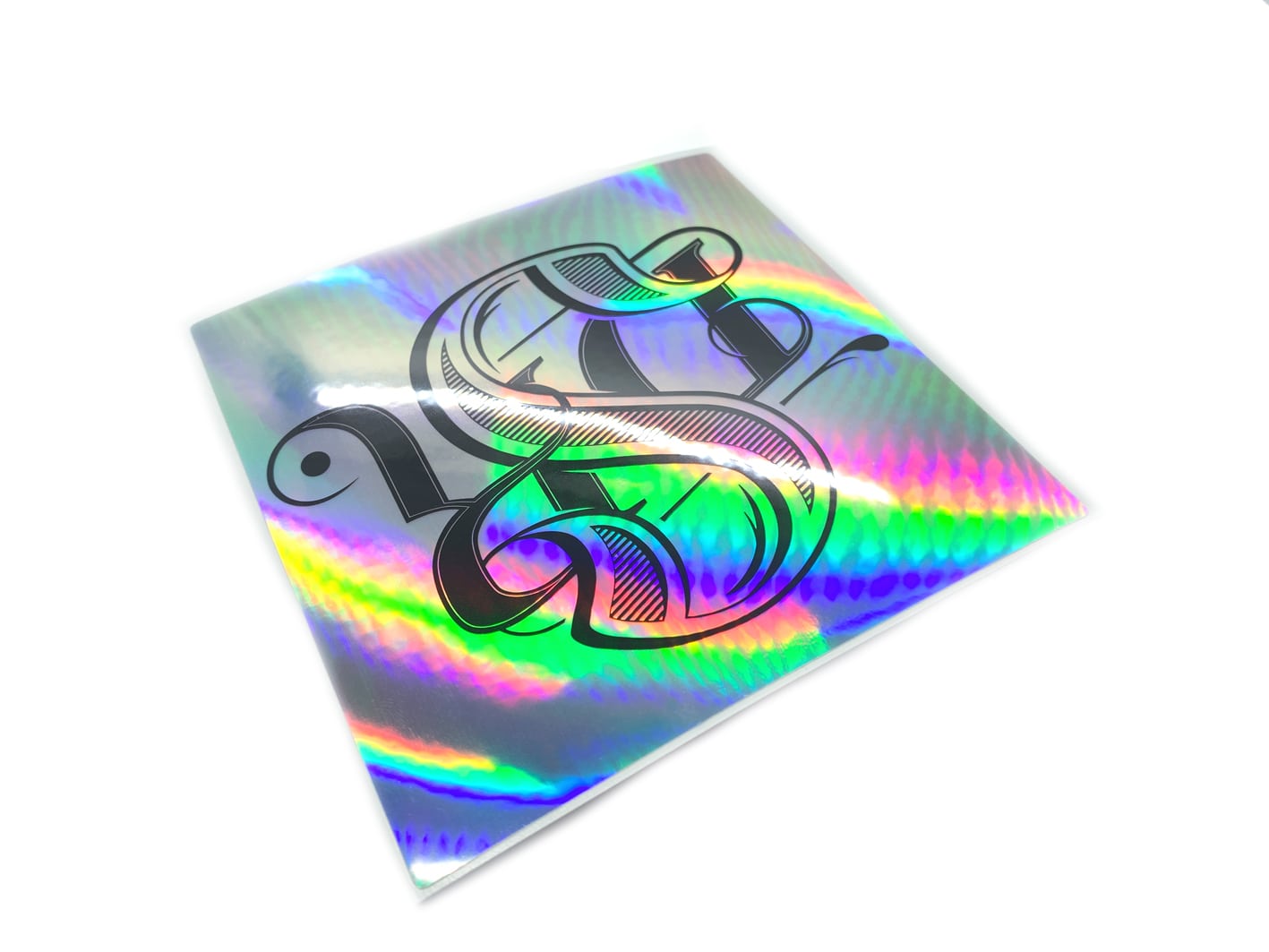 By cleverly setting up the print file to allow the holographic effect to show through in key areas of the image you can create some totally awesome sticker. This is the free holographic stickers selection which contains 20 items. It could be pretty much anything.