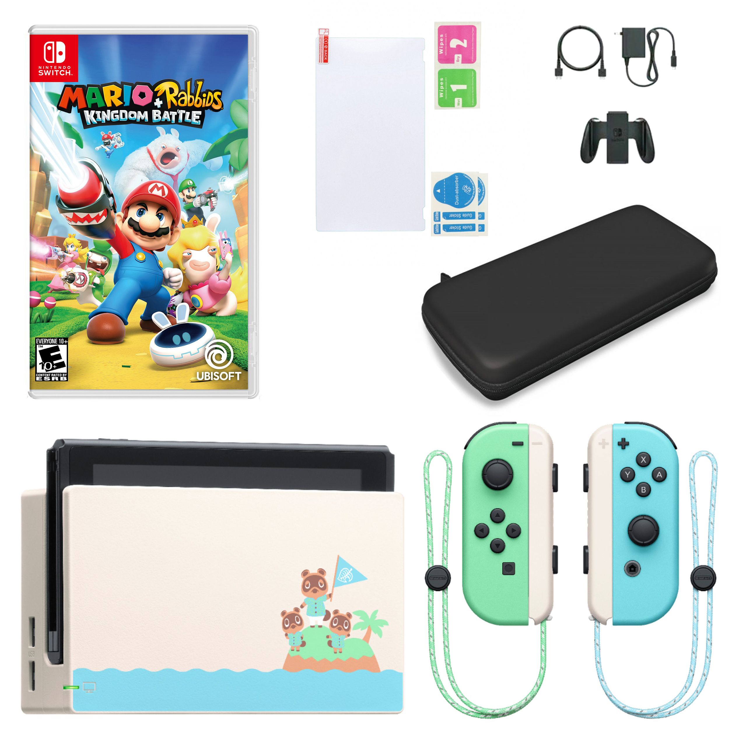 Fingerhut Nintendo Switch System Animal Crossing New Horizons Edition Bundle With Mario Rabbids Kingdom Battle Carry Case And Screen Protector Kit