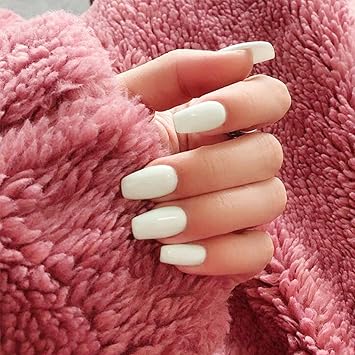 Amazon Com 24 Pcs Fake Nails Lacquer Coffin Nails White Full Cover Ballerina Nail Art Medium False Gel Nails Tips Sets For Women Teens Girls White Beauty