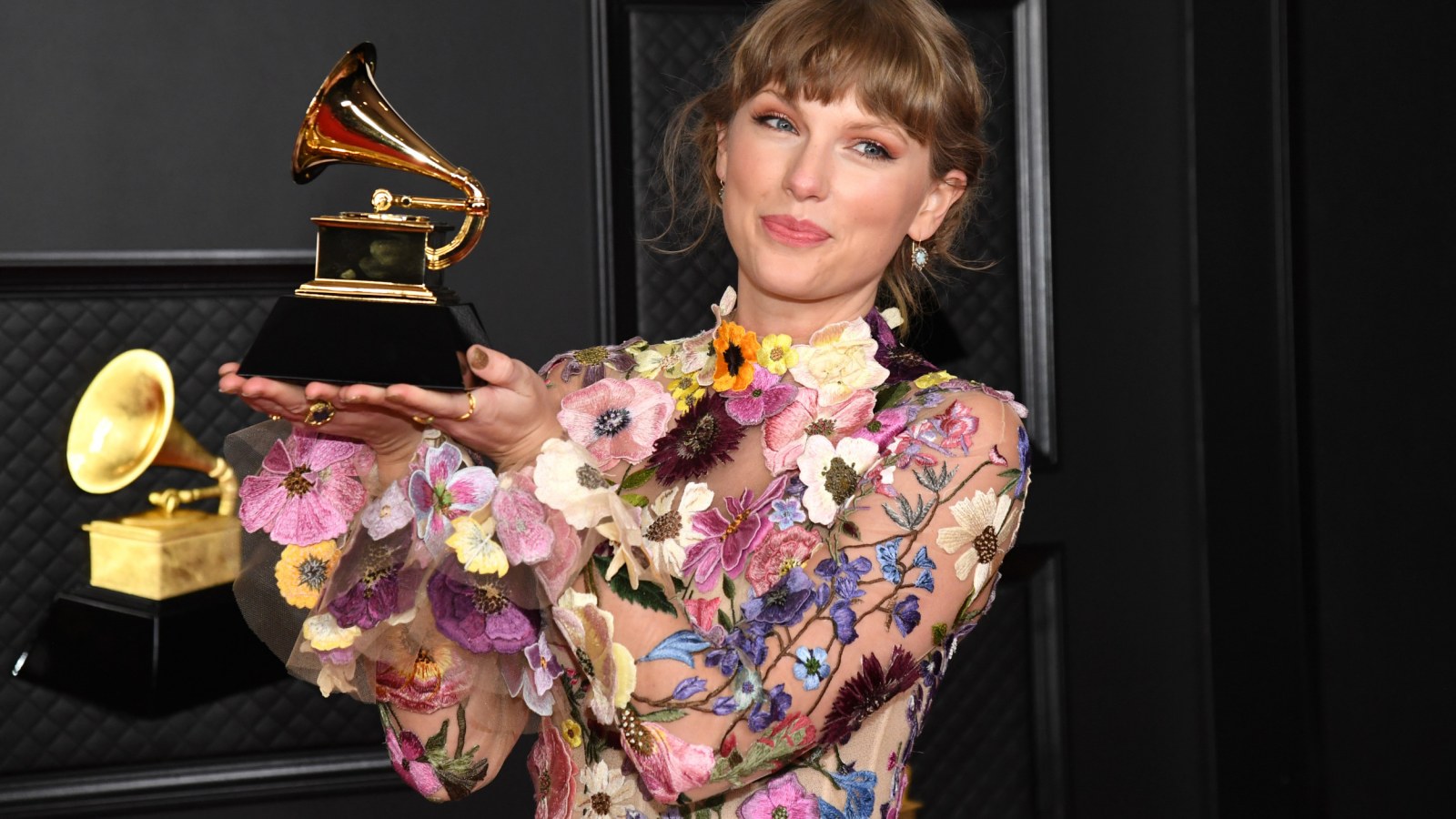 Taylor Swift Brings Flower Power To The Grammys 2021 Red Carpet