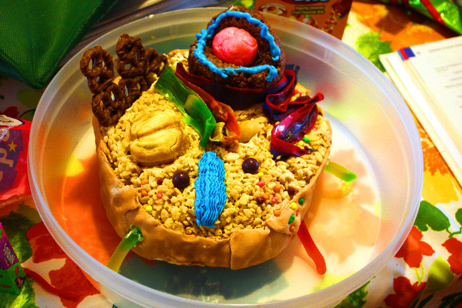It had to have all of the cell parts such as the Nucleus Nuclear Membrane Mitochondrion Golgi Bodies etc. Ingredients 1 box vanilla cake mix 1 package mini marshmallows 1 package red licorice 1 container green frosting 2 glazed donuts 1 powdered sugar donut hole 1 Twinkie 1 package orange slices gummy candy 1 package black cookie icing 1 package red licorice. An Edible Animal Cell Model My friends son had an assignment for school where he was required to make a 3d animal cell model.