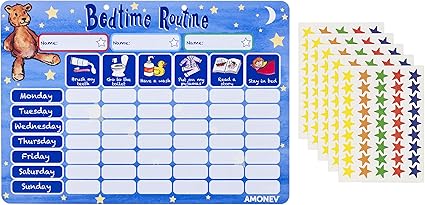 Amazon Com Amonev Magnetic Bedtime Routine Chart Reward Chart And Sleep Trainer Stay In Bed Chart For Boys Girls Toddlers And Young Children With 225 Stars Stickers Included Toys Games