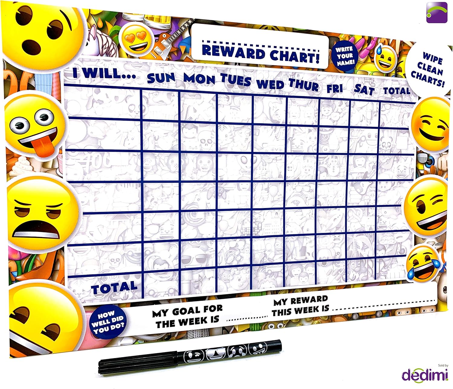 Stickers Chore 2 Reward Charts 115 Reward Stickers 1 Pen 1 Emoji Cut Out Behaviour Charts For Children Toddlers Dedimi Emoji Reward Chart With Stickers Potty Training Kids Weekly Planner Toys