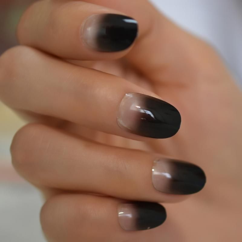 Black Ombre Clear False Nails Short Oval Press On Fingernails Nails Designed For Daily 24 Count From Carloas 16 06 Dhgate Com